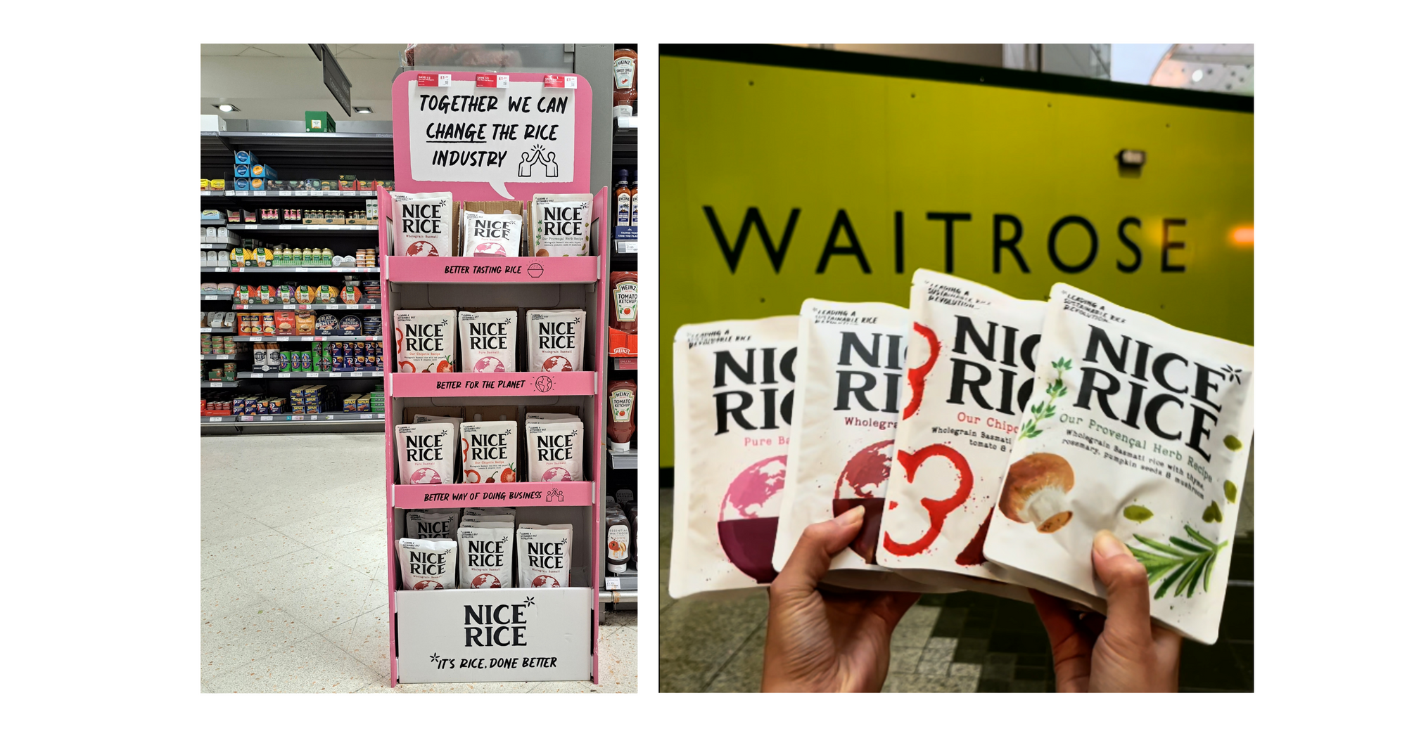 We secured a major listing with WAITROSE as our very first customer in June 2023…. talk about jumping in the deep end. Thankfully Waitrose shoppers are loving our rice and the recognition hasn’t stopped there—NICE RICE went on to Great Taste Awards for both our dry and cooked rice, and gold in The Grocer's New Product & Packaging Awards 2023.